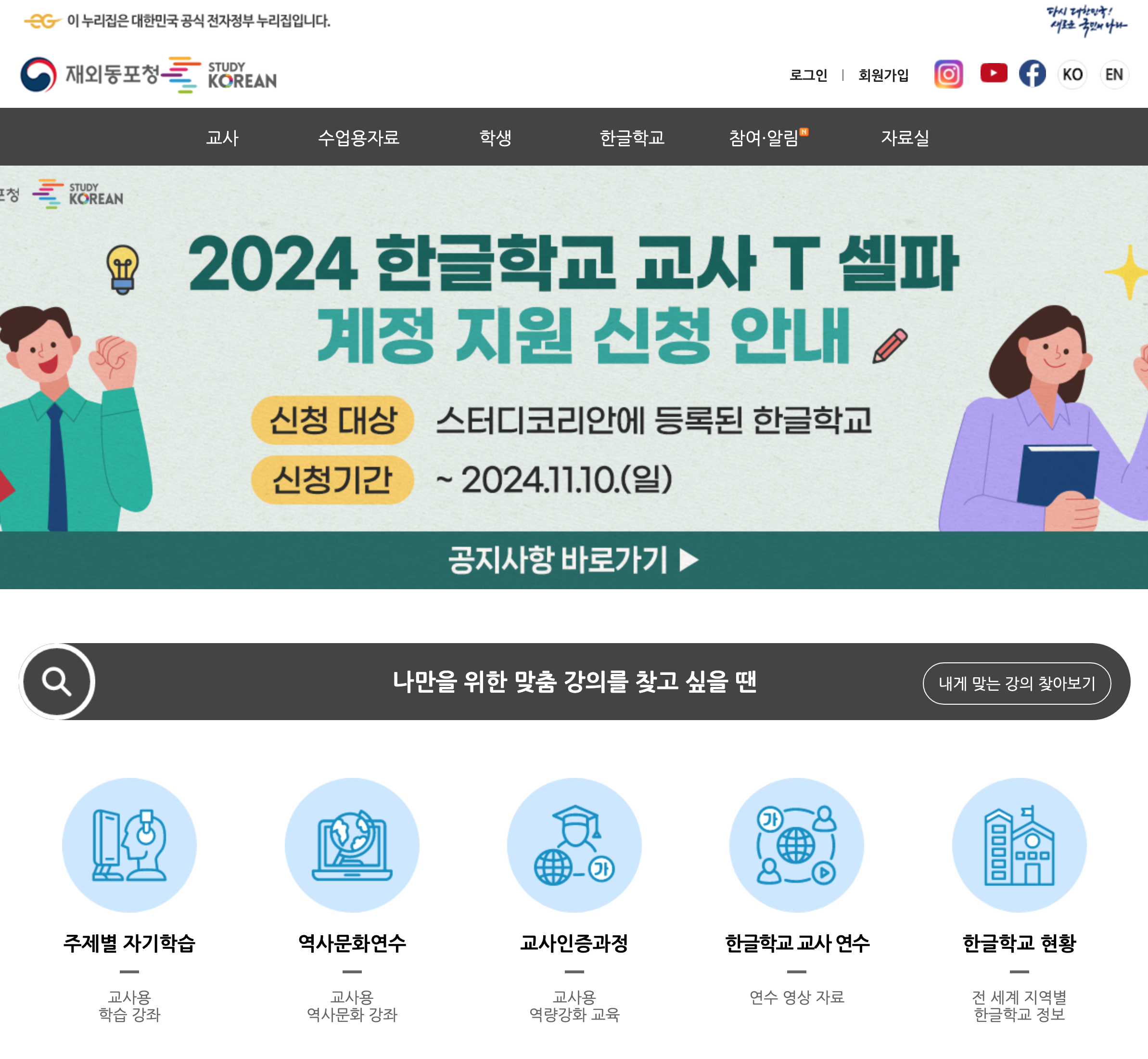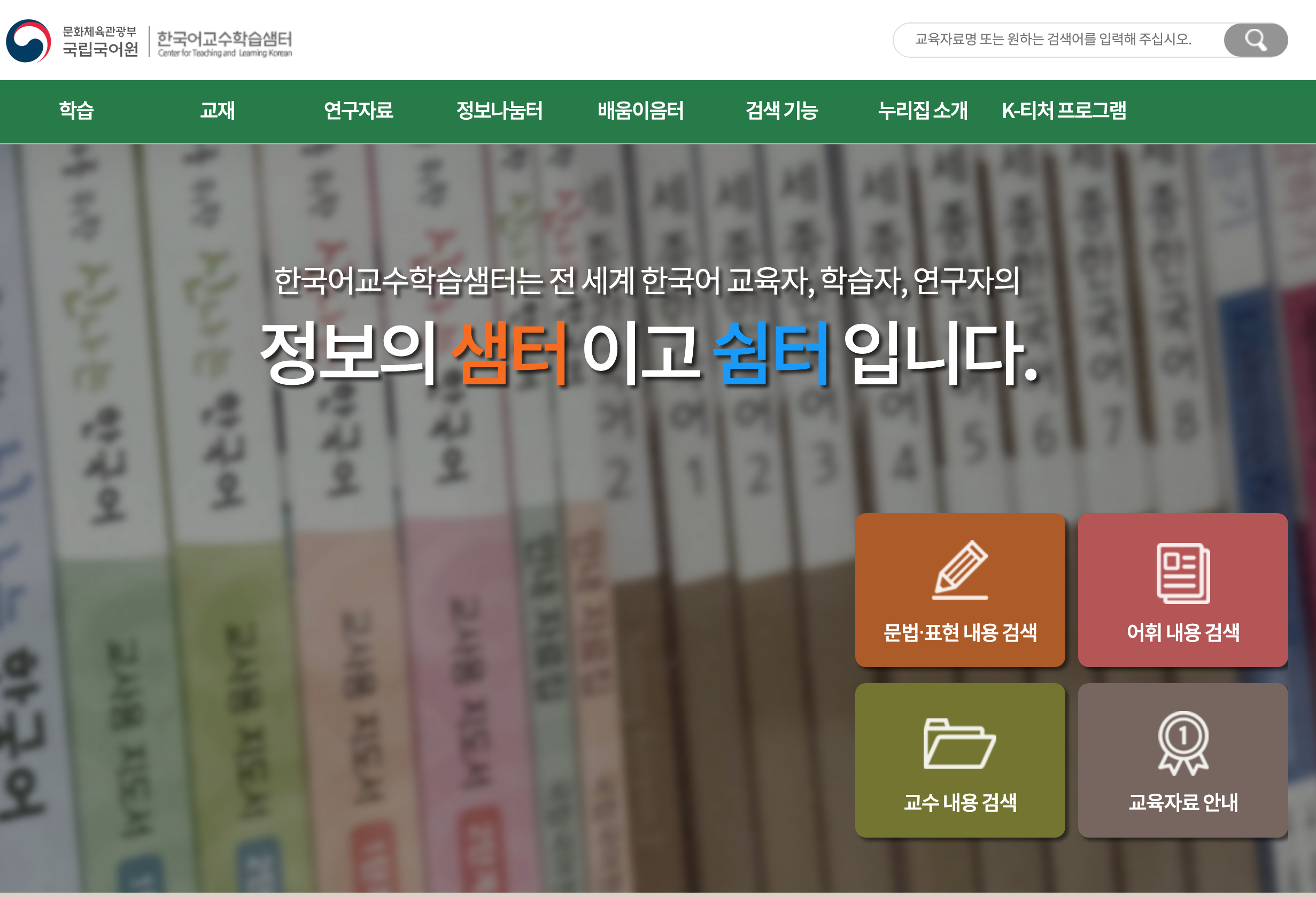 한국어 교육에 있어서 유익한 정보를 아래 사이트에서 해결 하실 수 있습니다.